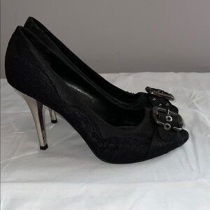 Charlotte Russe Metallic Gray Heels with Floral Design