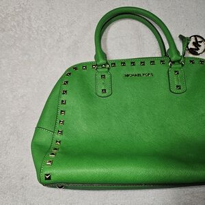 Elevate your style with this chic Michael Kors green bag. Featuring elegant studded details, it's perfect for any occasion. excellent condition like new.