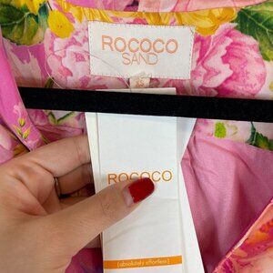 NWT Rococo Sand Leona Floral Print Surplice Neck Ruffle Mini Dress Pink Size XS