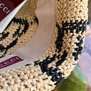 GUCCI Beige GG Monogram Raffia Bucket Hat SZ57(M)