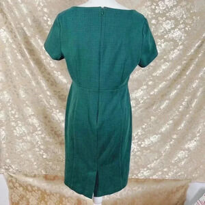 Ann Taylor Petite Green Houndstooth Sheath Dress Office Women's Size 12P