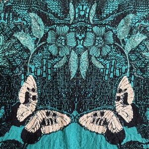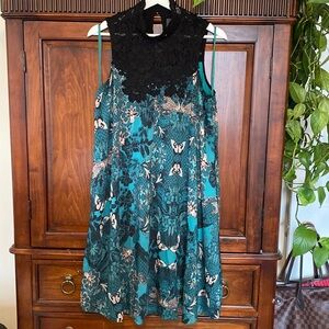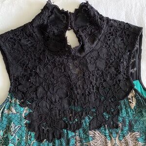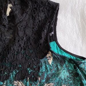 Anthropologie Maeve Silk blend Butterfly Swan Green print Lace top Swing Dress