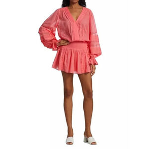 EUC $375 Ramy Brook Patty Patty Crochet-Trim Mini Dress - Long-Sleeve V-Neck
