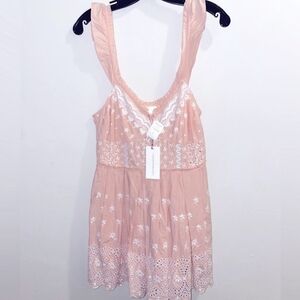 LoveShackFancy Mochi Mini Dress Pink Size 6 Eyelet Sleeveless Pleated Boho NWT