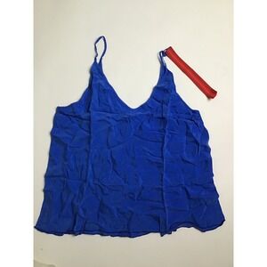Left on Friday First Place v-neck camisole tank in vibrant blue. The tank features adjustable spaghetti straps and a relaxed fit.