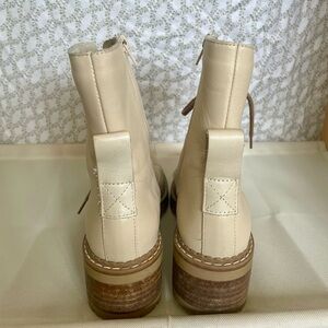 Step out in style with these chic cream lace-up ankle boots. Perfect for any occasion, these boots offer both comfort and elegance.