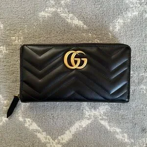 Authentic Gucci Marmont Zip Around Wallet, Black with Gold Hardware, NEW