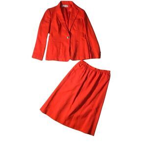 Vintage Evan Picone Linen Lined Red 2 piece Jacket Pockets Suit 10 12 Union Made