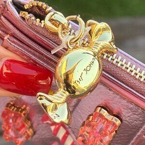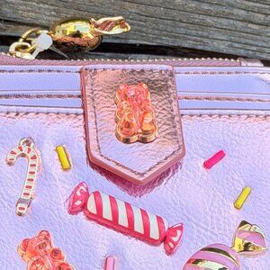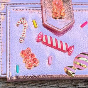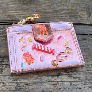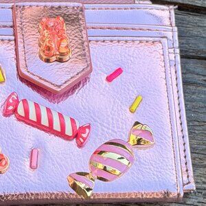 Betsey Johnson Kitsch Candy Bifold Wallet Pink Metallic Candy Gummy Bears Charms