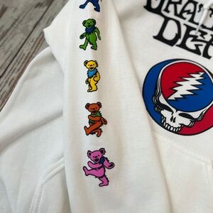 grateful dead hoodie, steal your face hoodie, white band hoodie, dancing bear sweatshirt, stealie skull hoodie, grateful dead merch, licensed band hoodie, unisex hoodie small, concert sweatshirt, music merch hoodie