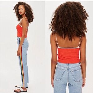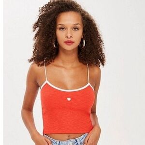 Adorable, kind of sexy and sweet with a dash of innocence. So softy and comfy! Ribbed cotton. Heart embroidered on front in white. White edging at neckline and straps. The white still has it’s bright white not graying or yellowing out. Barely wore this, maybe once, in excellent, like new condition. No stains or pilling.