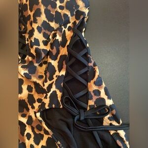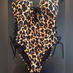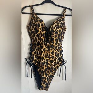 Bar III Cheetah Animal Print Lace Up One-Piece Swimsuit Size Small NWT