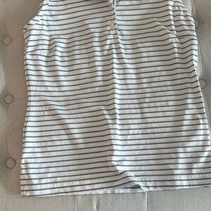 Chic sleeveless tank with black and white stripes. Features a polo collar. Ideal for casual outings.