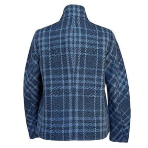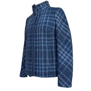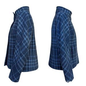 Talbots Blue Gray Plaid Blazer Coat Jacket Wool Pockets Mock Neck Snaps Size 6
