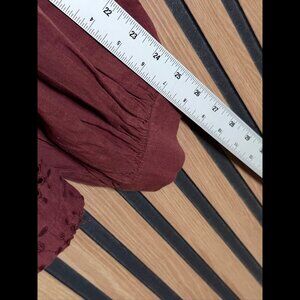 Anthropologie Top XL Womens Burgundy Balloon Sleeve V Neck Eyelet Trim Boho