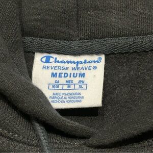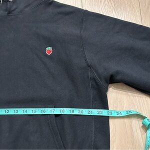 Champion Reverse Weave Hoodie Black Pullover Sweatshirt Tapered Strawberry Logo