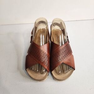 Yokono Cork Wedge Brown Leather Open Toe Sandals Shoes Womens Size 6 37 Boho