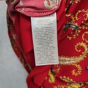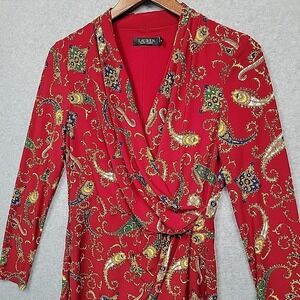 LAUREN RALPH LAUREN Paisley Pleated Surplice Faux Wrap Jersey Dress 6 Red Blue