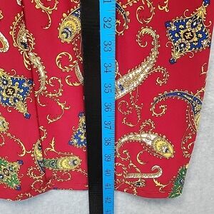 The LAUREN RALPH LAUREN Paisley Pleated Surplice Faux Wrap Jersey Dress in size 6 is a stylish and versatile piece for various occasions. This dress features a flattering surplice neckline, long sleeves, and a pullover closure for ease of wear. Made from a blend of polyester and spandex, the jersey fabric offers comfort and stretch. The paisley pattern in shades of red, blue, yellow, green, and white adds a touch of elegance, while the pleated accents and ruched details make it a chic and timeless option for both casual and formal events. Perfect for the modern woman looking for a classic and colorful addition to her wardrobe. Note: Please see photos for condition details and measurements. Excellent pre-owned condition.