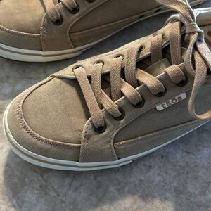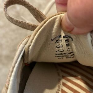 The Taos Moc Star Women's Size 9 Shoes are a stylish and comfortable pair of sneakers perfect for casual wear, travel, activewear, and workwear. Made with distressed brown and white canvas, these lace-up shoes feature a flat heel, lightweight design, and breathable canvas lining. With a closed toe and low top shoe shaft style, these sneakers are suitable for all seasons and occasions. The Taos brand is known for quality and performance, making these shoes a reliable choice for women looking for both style and comfort in their footwear.