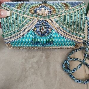 Mary Frances Turquoise and Gold Beaded Clutch