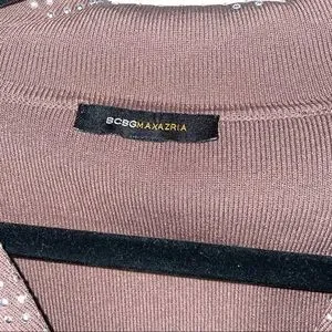 bcbgmaxzria sweater brown jacket woman studs fits small buttons up rhinestone
