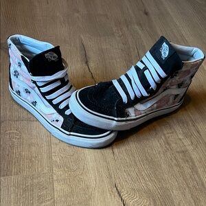 Vans Womens High-Top Sneakers - Black and Floral Pink