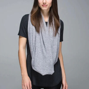 Preowned, Lululemon Vinyasa Scarf Wrap Travel Blanket Rulu Mini Check Pique White Heathered Black Reversible