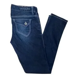 GUESS Jeans Women’s Y2K Distressed Skinny Fit Dark Blue Denim in Size 12