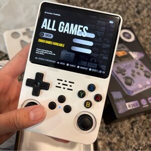 Enjoy classic gaming with this retro handheld game console. Featuring a sleek white design, it's perfect for gaming on the go.