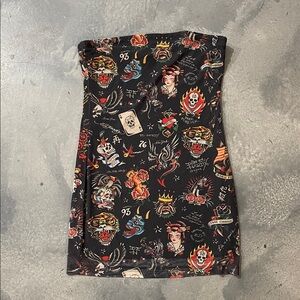 Ed Hardy Tattoo Print Mesh Mini Dress - Black – Dolls Kill Sz L Women’s