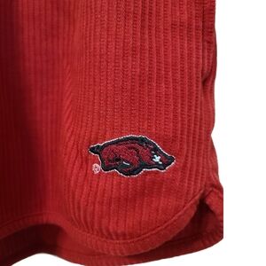 Bright red Arkansas Razorbacks stretch waiste shorts a comfortable fit. Features a drawstring waist and side pockets.