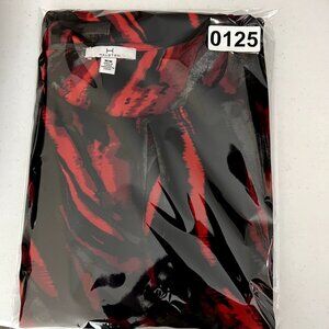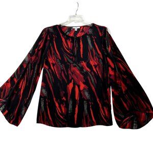 womens blouse Halston top red black blouse abstract print top slit sleeve blouse long sleeve blouse polyester top chic blouse casual blouse flowy blouse medium blouse designer blouse womens fashion