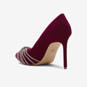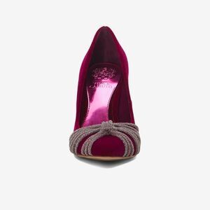 NWOB Vince Camuto Faine Plush Velvet Embellished Stiletto Pumps in Magenta Sz 6