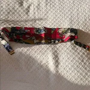 Another wedding down ! Vibrant Hermes cummerbund with a bold pattern. Features red, blue, green, and yellow colors.