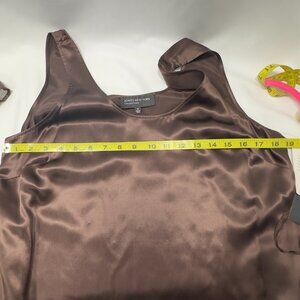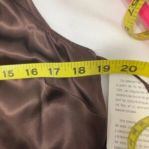 Jones New York Collection sz12 Manderin Banded Collar Lace Top Silk Cami Ruffled Front "Winter Palace, Chestnut Brown" two piece top, pit to pit 19" and shoulder to hem 25" no sleeves just caps sleeve