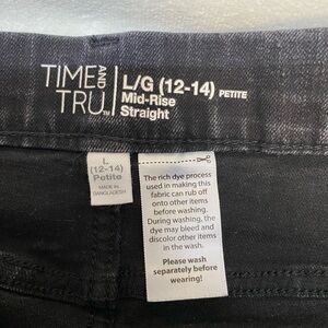 Time and tru women’s pull on mid rise straight petite jeans size Large (12-14) black