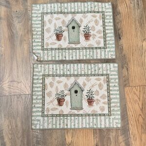 Vintage woven country cottagecore dining placemats Pfaltzgraff birdhouse decor