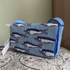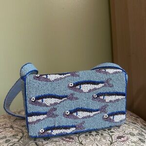 Rare Blue Fish Patterned Beaded Handbag