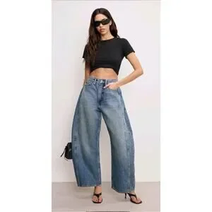 NWT. Good American Good Extreme Barrel Indigo Jeans Size 6