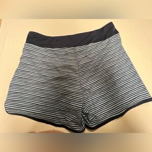 HANG TEN MENS SWIM TRUNKS. SIZE LARGE. LIGHT AND DARK BLUE STRIPES.