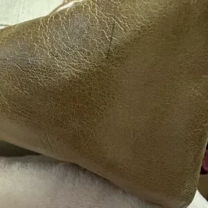 Chic leather hobo bag by HOBO. Smooth tan finish. Perfect for everyday style. This great purse has 2 pockets outside and 4 pockets inside. A small ink mark on the side.