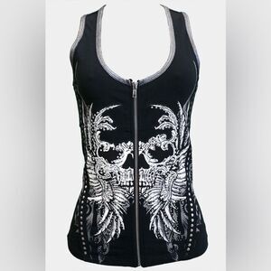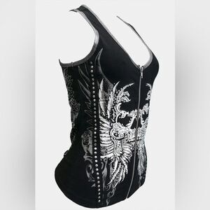 Skull Zip Up Silver Lined Vest Top