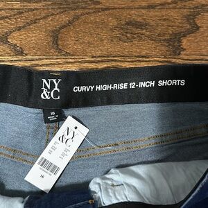 New York and Company Curvy Stretch High Rise 12-Inch Cut Off Blue Jean Shorts 16