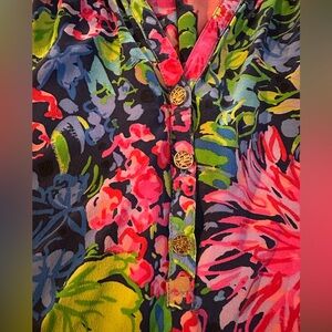 Lilly Pulitzer Medium Elsa 100% Silk Top Festive Fantasy! Great colors for dressing up or casual wear!
