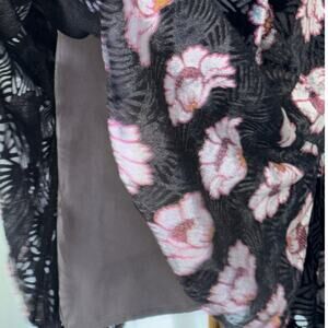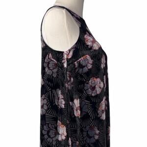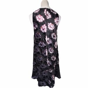 Ann Taylor Loft “Iced Floral Velvet Swing Cocktail”. Sleeveless shift dress in burnout velvet floral art deco design. Black with pink and orange flowers in an abstract pattern. Knee length. New without tags.