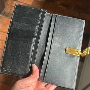 Vintage Gucci Black Leather Wallet with Gold Tone Clasp
