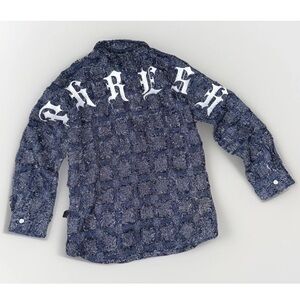 NWT KLEEP Kids Boys Sz 7/8 Embroidered Light Weight Shirt Navy Fumo Button Down