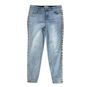 KNOX ROSE Embroidered Rainbow Southwestern Stripe Jeans 12 Light Wash EUC