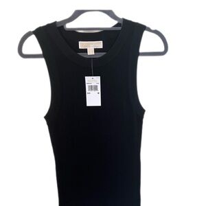 Michael Kors Ribbed Knit Tank Top Black Sleeveless Fitted Layering Designer Minimalist Classic Essential Stretch Casual Summer Basic Athleisure